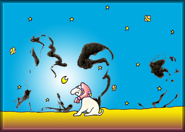 sitzt im Sand und wartet bang
