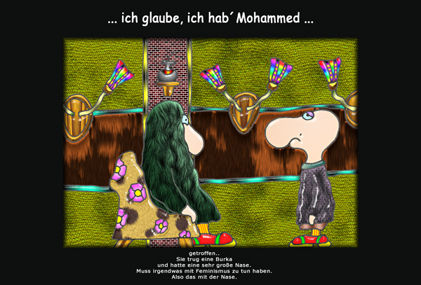 getroffen. Sie trug eine Burka und hatte eine sehr große Nase. Muss irgendwas mit Feminismus zu tun haben. Also das mit der Nase.
