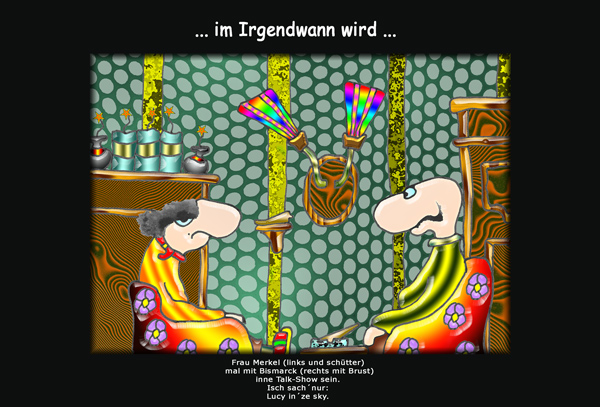 Frau Merkel (links und schütter) mal mit Bismarck (rechts mit Brust) inne Talkshow sein. Isch sach nur: Lucy in´ze sky
