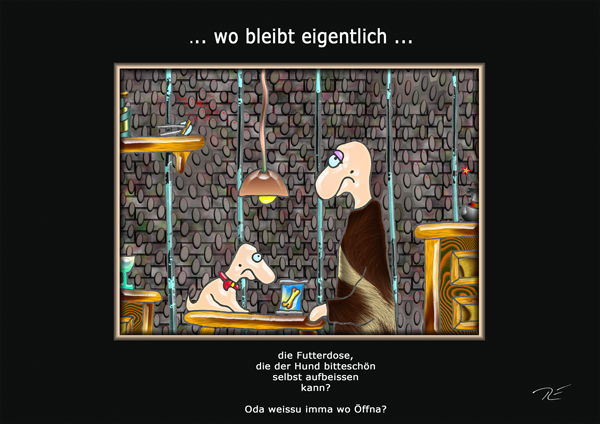 die Futterdose, die der Hund bitteschön selbst aufbeissen kann? Oda weissu imma wo Öffna?