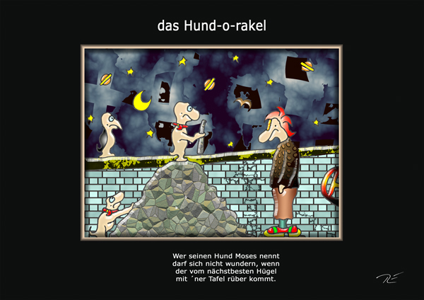 Wer seinen Hund Moses nennt darf sich nicht wundern, wenn der vom nächstbesten Hügel mit Tafeln rüber kommt.