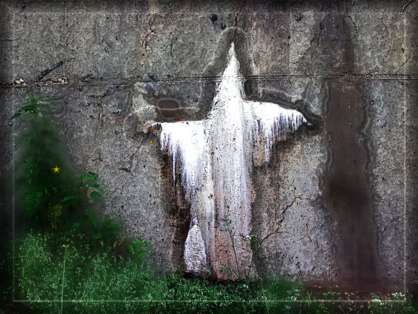 (Alles gar nicht wahr. Ist bloß ein Kalkfleck auf einem Betonsockel, logisch)