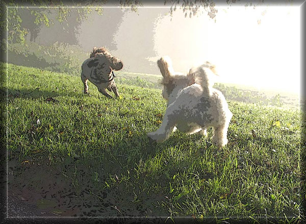 Kleine Morgennebelszene: Herr Paul und Filou. (wo ist Pudeldame) Erfrischender Morgen, sag' ich jetzt mal.